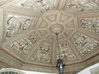 Há por aí conterrâneos bem intencionados que não se cansam de repetir que Tomar a dianteira "só diz mal, é só má-língua". Têm razão, se esquecermos que não seria nada honesto afirmar que está um sol radioso, quando toda a gente vê que chove a cântaros. Ou não será assim ? Acham melhor tentar adormecer os eleitores com notícias falsas, ou com silêncios cúmplices e comprados ?Hoje, só para contrariar tais arautos, resolvemos dizer bem do Convento de Cristo. Assim, a magnífica Sala dos Cavaleiros, no ex-Hospital Militar Regional 3 (1927/199o), de finais do século XVII (1688), fechada ao público há décadas, está de boa saúde. Aqui temos um aspecto do tecto octogonal de madeira policromada, ainda em bom estado de conservação, apesar da notória falta de manutenção adequada. E até temos tido muita sorte -ainda não roubaram a lanterna. Ao preço a que estão as antiguidades, vá lá, vá lá ! Continuamos a ser um país de brandos costumes. Oxalá por muito mais tempo !